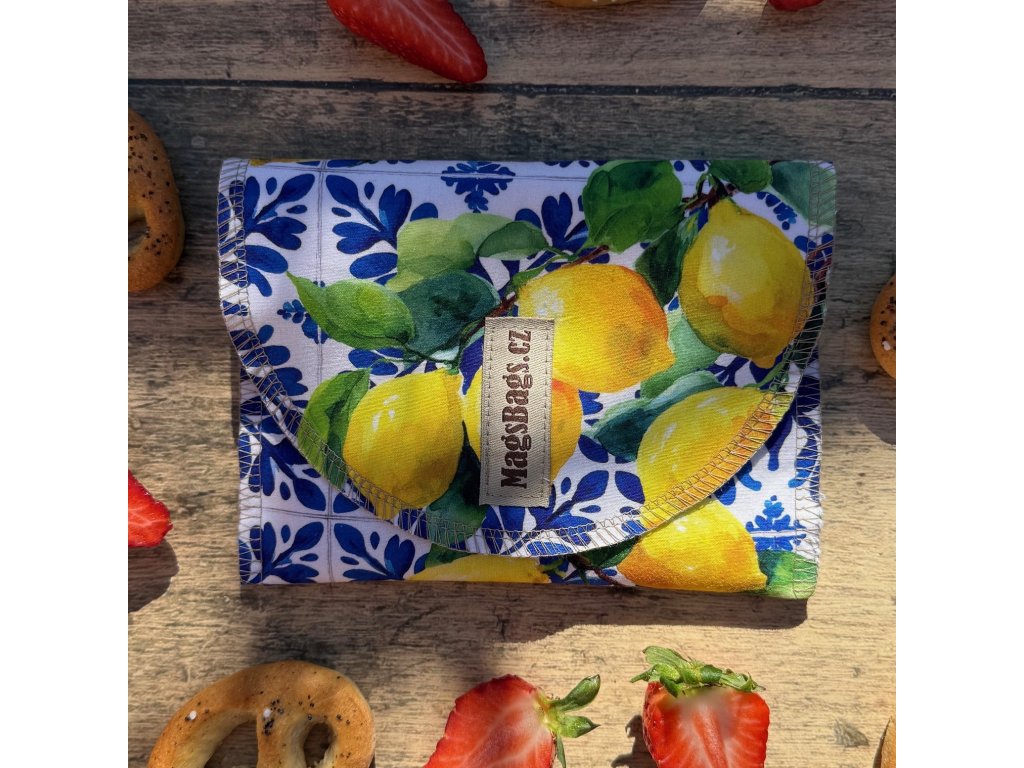 Vnitřní látka je lehce otíratelná, stačí otočit naruby a vytřít houbičkou s běžným prostředkem na mytí nádobí. Celou kapsu je možné prát v pračce na 40°C. Nepoužívejte aviváž, ničí vnitřní látku a mění chuť zabalené svačiny. Sušte volně.