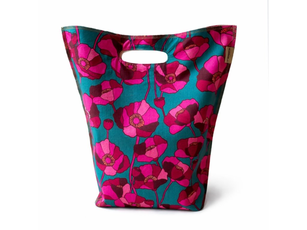 Obědová taška velká - vínové květy na petrolejové Magsbags.cz