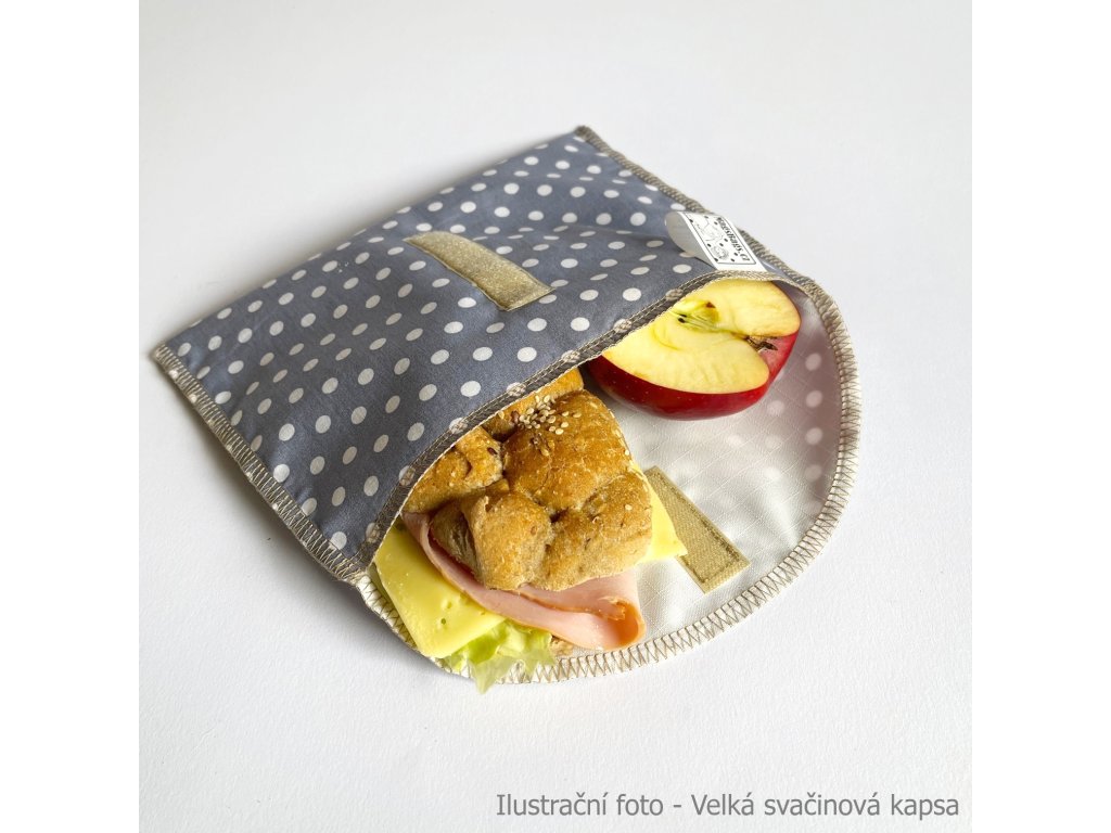 Variabilní uzavírání na praktický suchý zip, kapsu tak můžete přizpůsobit velkosti svačiny.