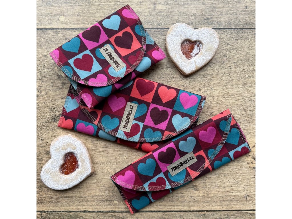 Sada velké a malé kapsy a jednorohlíkovky, barevná srdce MagsBags.cz